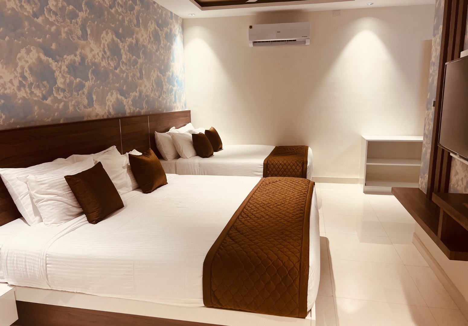 Welcome to Nandha Grande, where genuine hospitality meets professional service. We are committed to delivering 100% guest satisfaction in every aspect of your stay. Along with four-star facilities, we provide clean, comfortable, and spacious accommodations to ensure a memorable experience and true value for money.